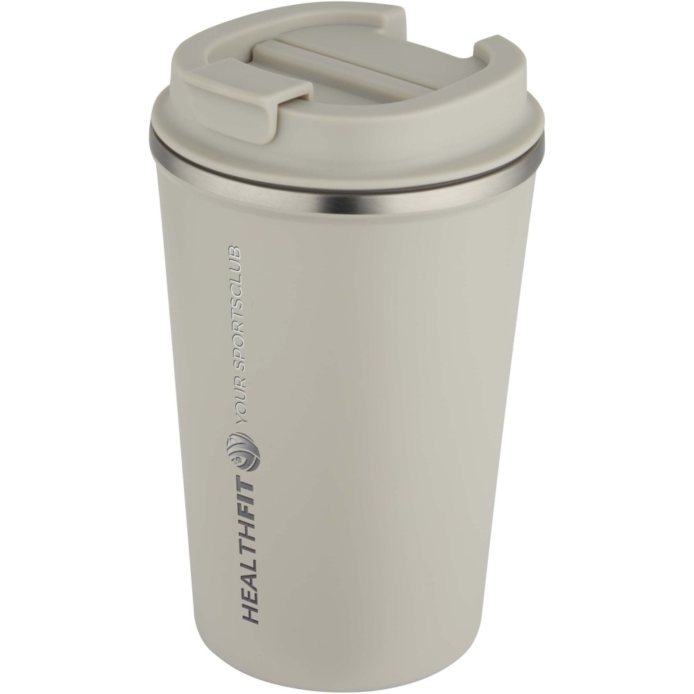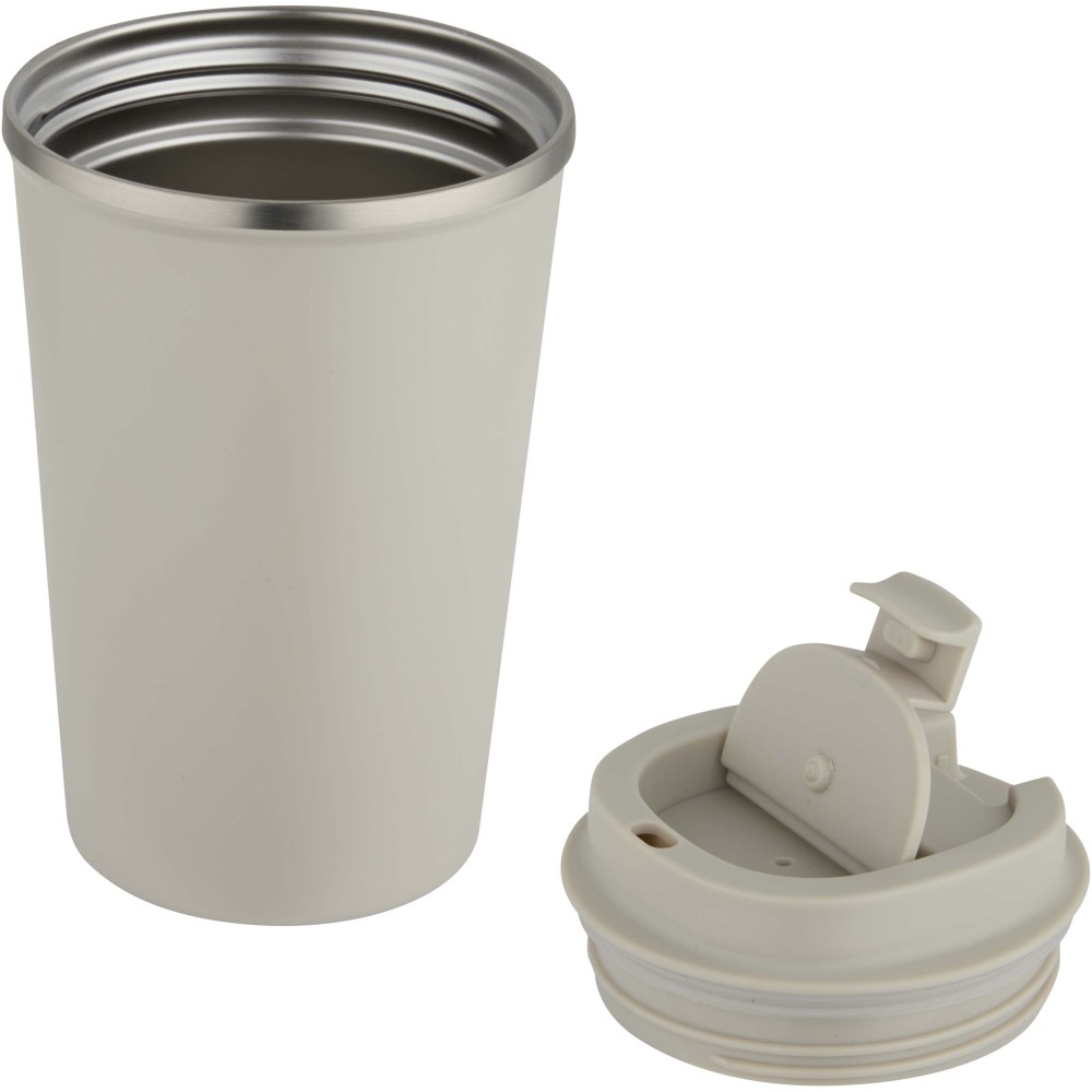 Designed for drinks on the go, this double-wall, vacuum-insulated stainless steel coffee tumbler keeps beverages at the right temperature for longer. A twist-on lid allows smooth opening and closing while making the drink easy to enjoy, and the matte coating adds a sleek finish. Volume capacity: 350 ml.
