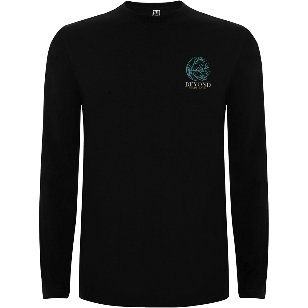Long-sleeve t-shirt in tubular fabric and 4-layer crew neck. Reinforced covered seams in collar and shoulders. No cuffs. Removable label. Tubular design in adult sizes and side seams in kids sizes. The model is 185 cm and is wearing size L. Grey/58: 85% Cotton and 15% Viscose, 160 g/m2. Other colors: Single Jersey knit of 100% Cotton, 160 g/m2.