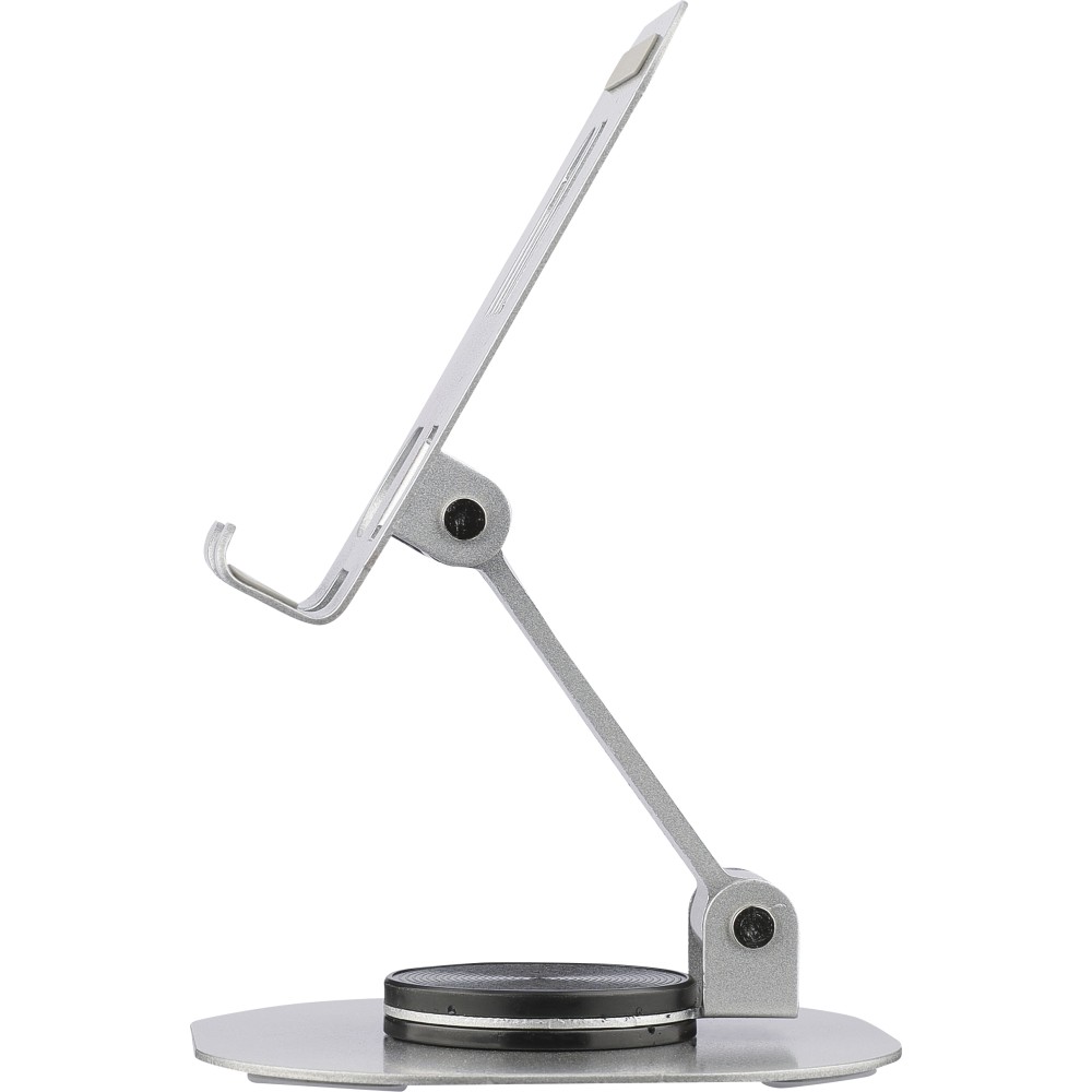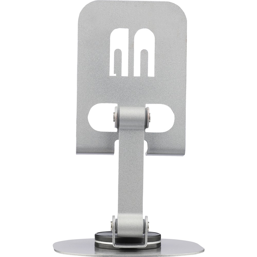 Aluminium alloy phone stand with 360-degree rotation function. Can be fully folded flat for easy storage. Sturdy and weighty design for stable support. Individually packaged in a white box.