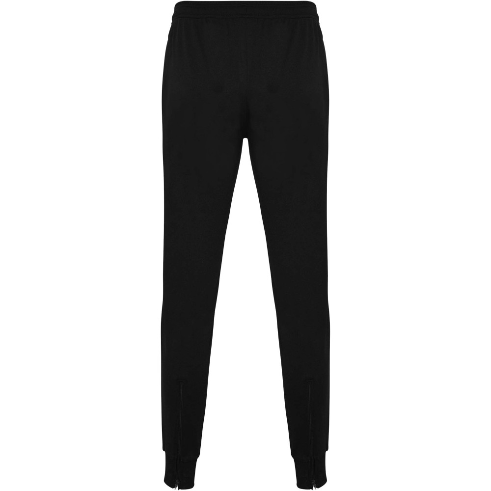 Trousers with adjustable elastic waistband with inner drawcord. Side pockets. Cuffs and zip on bottom leg. Removable label.