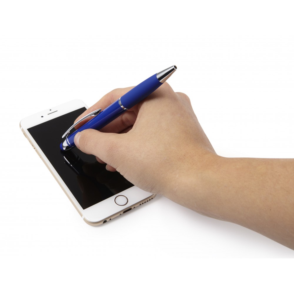 Shiny ballpen with matching coloured rubber grip, blue