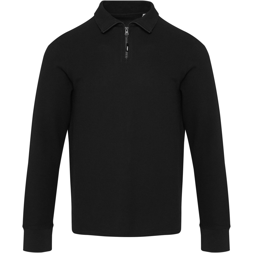 The Zeus unisex long sleeve with half zip is made from 245 g/m2 piqué knit in 100% cotton for year-round wear. It features refined pick-stitch detailing, with self-fabric neck tape for added durability and side slits with self-fabric inserts for enhanced mobility. A heat transfer main label ensures label-free comfort. Equipped with AWARE™ traceability technology, this garment includes a digital product passport for verified transparency and sustainability.