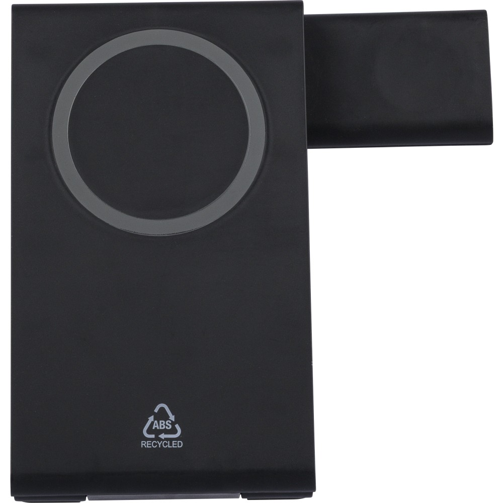 Recycled ABS 3-in-1 magnetic wireless charger Valerio, black