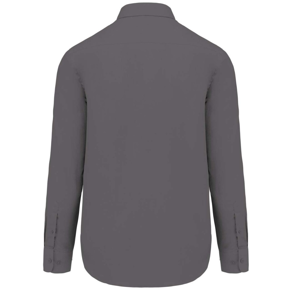 65% polyester / 35% cotton poplin. Easy-care fabric. Cut-away boned collar. Matching buttons. Rounded chest pocket on left side. Double back yoke. Felled seams. Adjustable rounded button cuffs with placket. 2 spare buttons. Certifié STANDARD 100 by OEKO-TEX® N° CQ1007/8, IFTH.