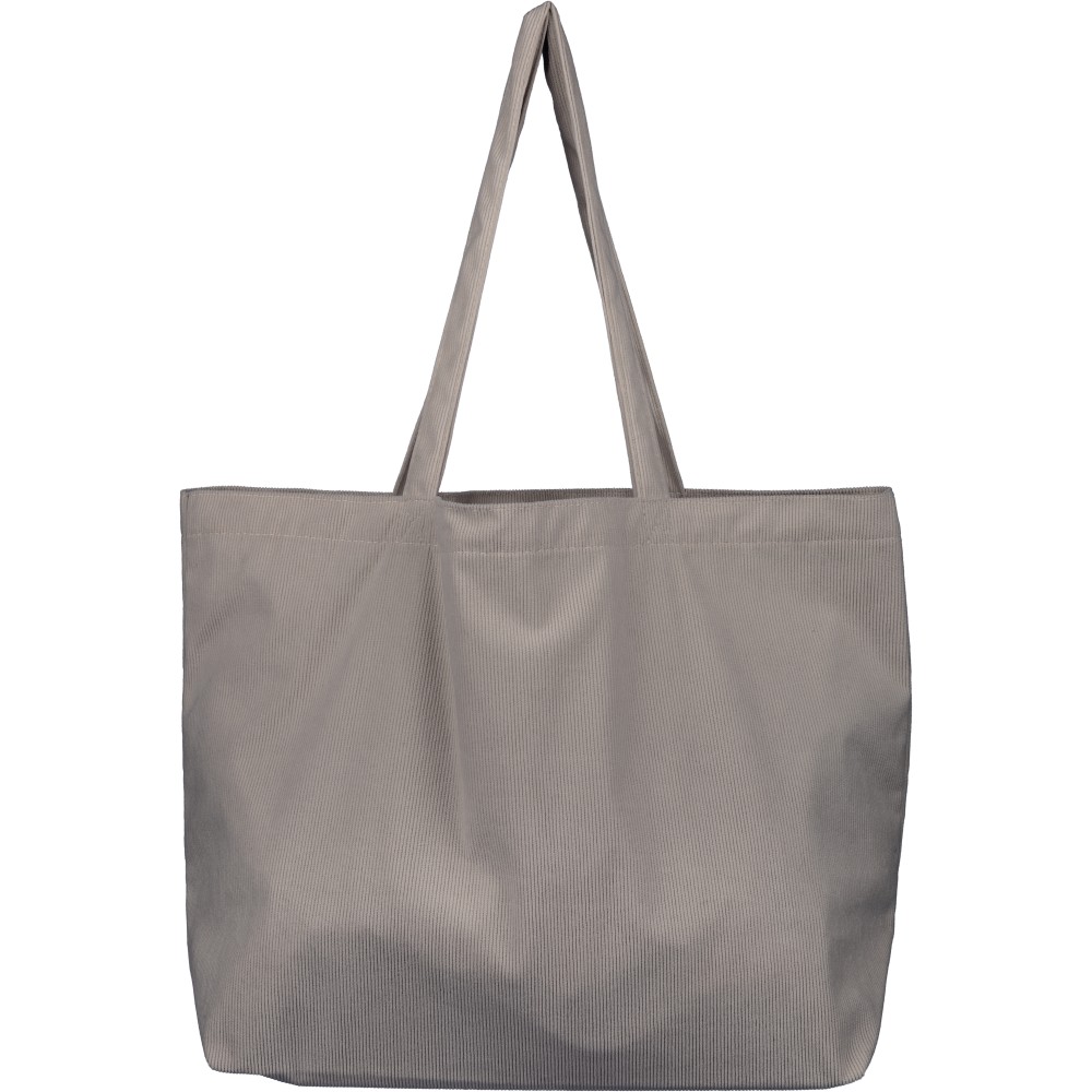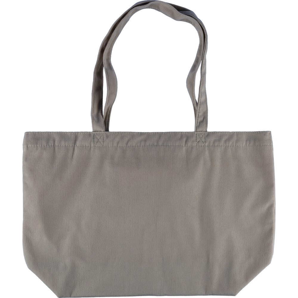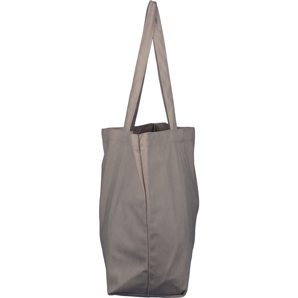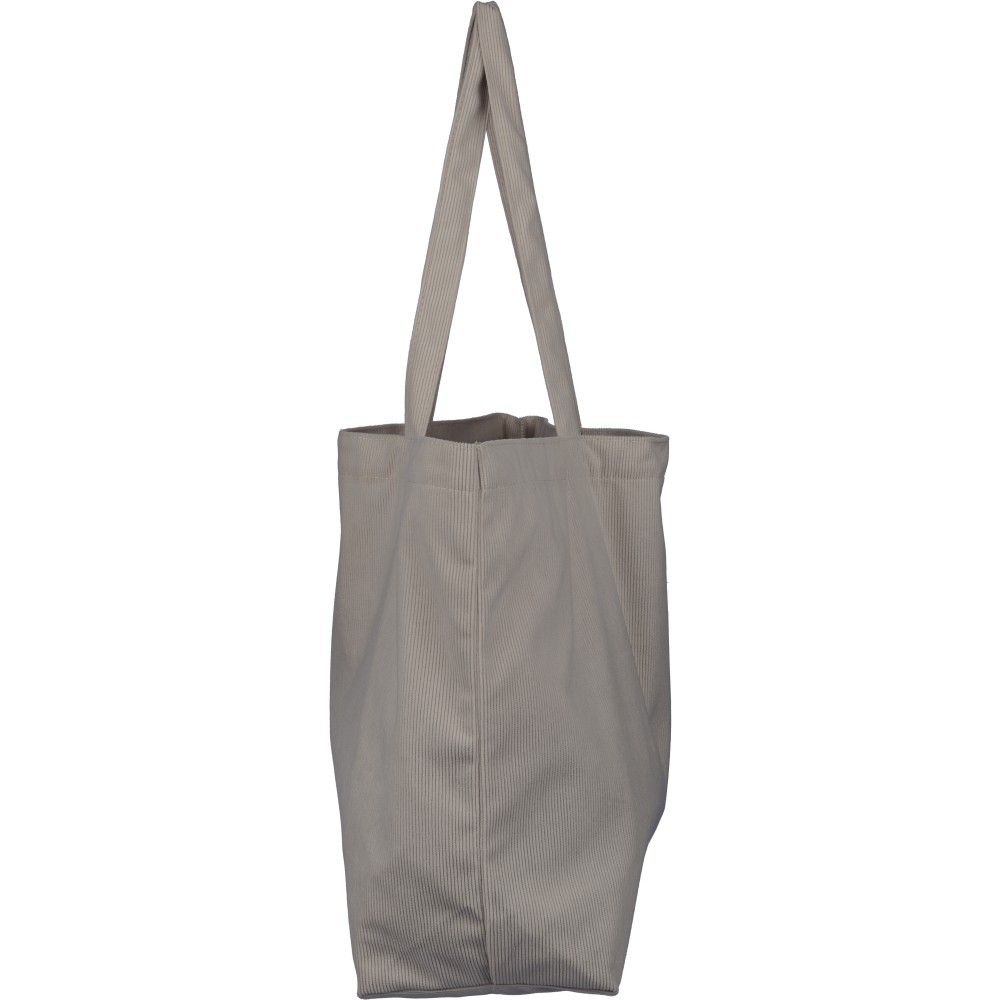 Corduroy tote bag with long handles (2.5 x 60 cm). Features a spacious main compartment with size 51 x 15 x 33 cm and an inside pocket (10 x 10 cm). Suitable for everyday use.