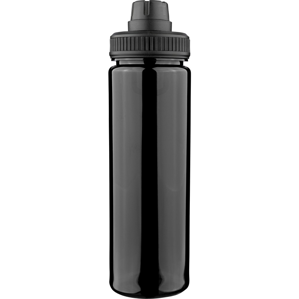 rPET drinking bottle (750 ml) with PP lid featuring a carrying handle and screw cap. Includes a colored silicone detail in the lid, matched to the transparent bottle body.