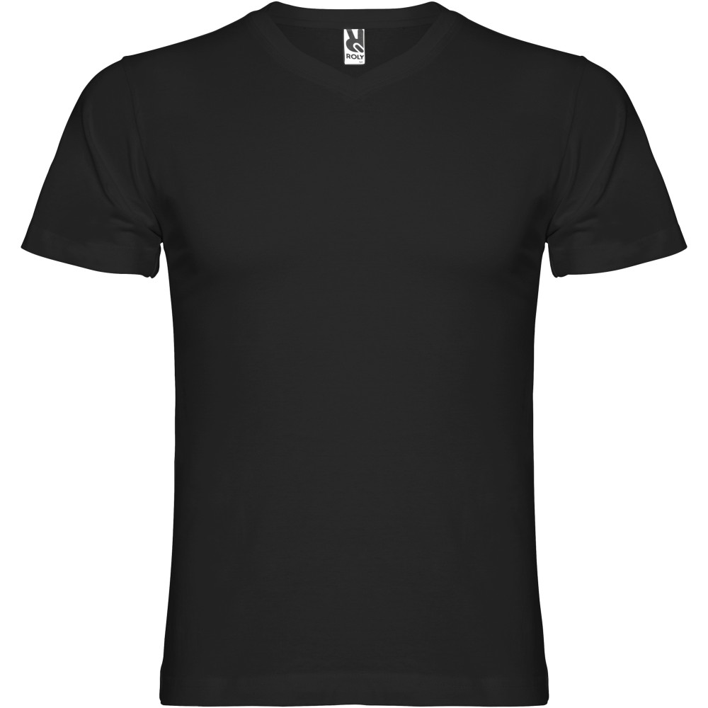 Tubular short-sleeve t-shirt with 2-layer v-neck. Reinforced covered seams in collar and shoulders. Removable label. The model is 190 cm and is wearing size L.
