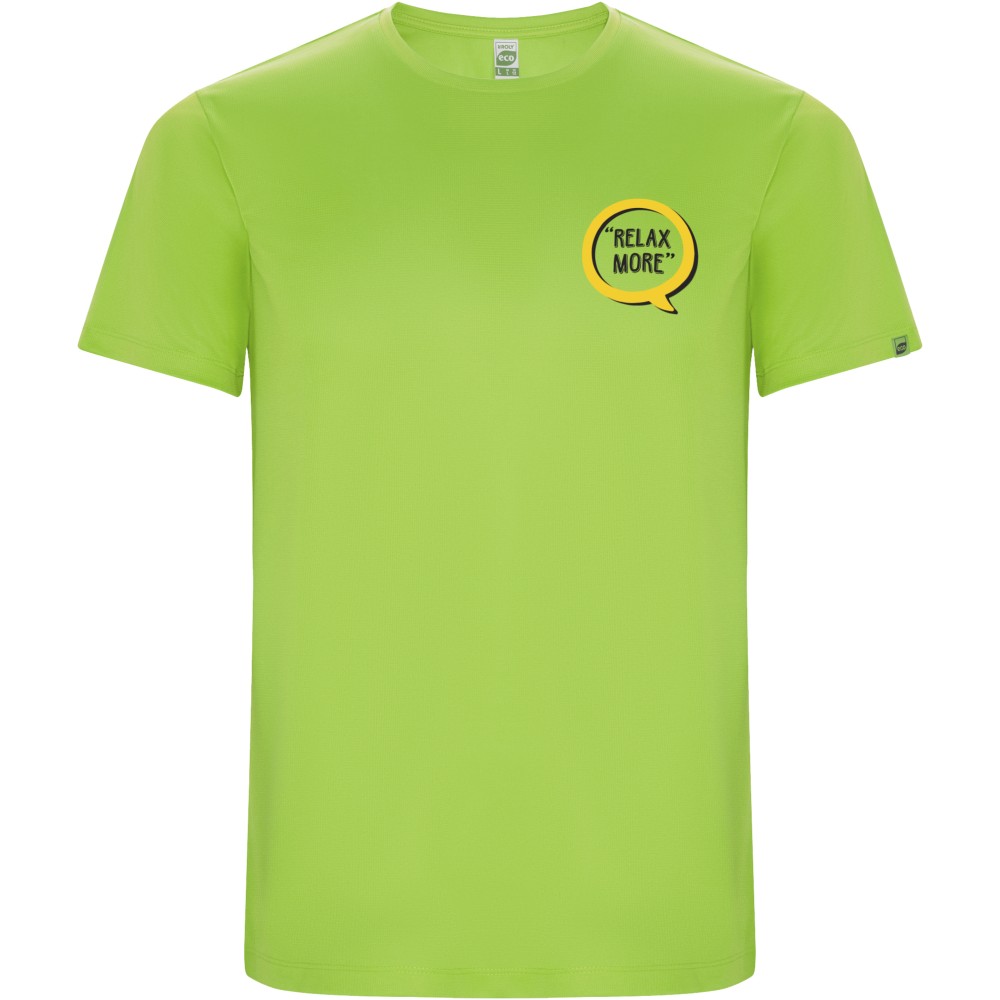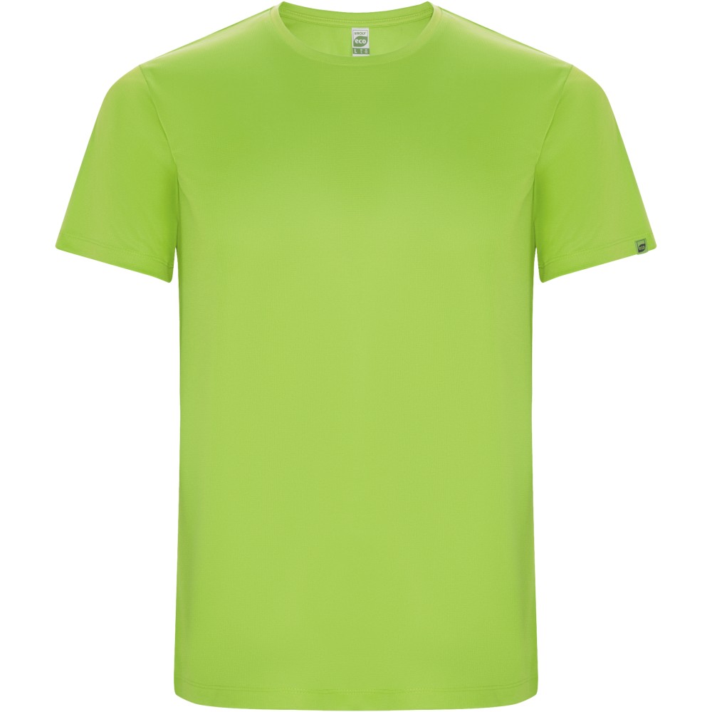 Technical short-sleeve t-shirt in recycled CONTROL-DRY polyester. Crew neck with matching covered seams. ECO logo label on sleeve. Packing in recycled material. Removable ECO label. Packing in recycled material. Technical fabric. The model is 180 cm and is wearing size M. Interlock knit of 50% Recycled Polyester and 50% Polyester, 135 g/m2.