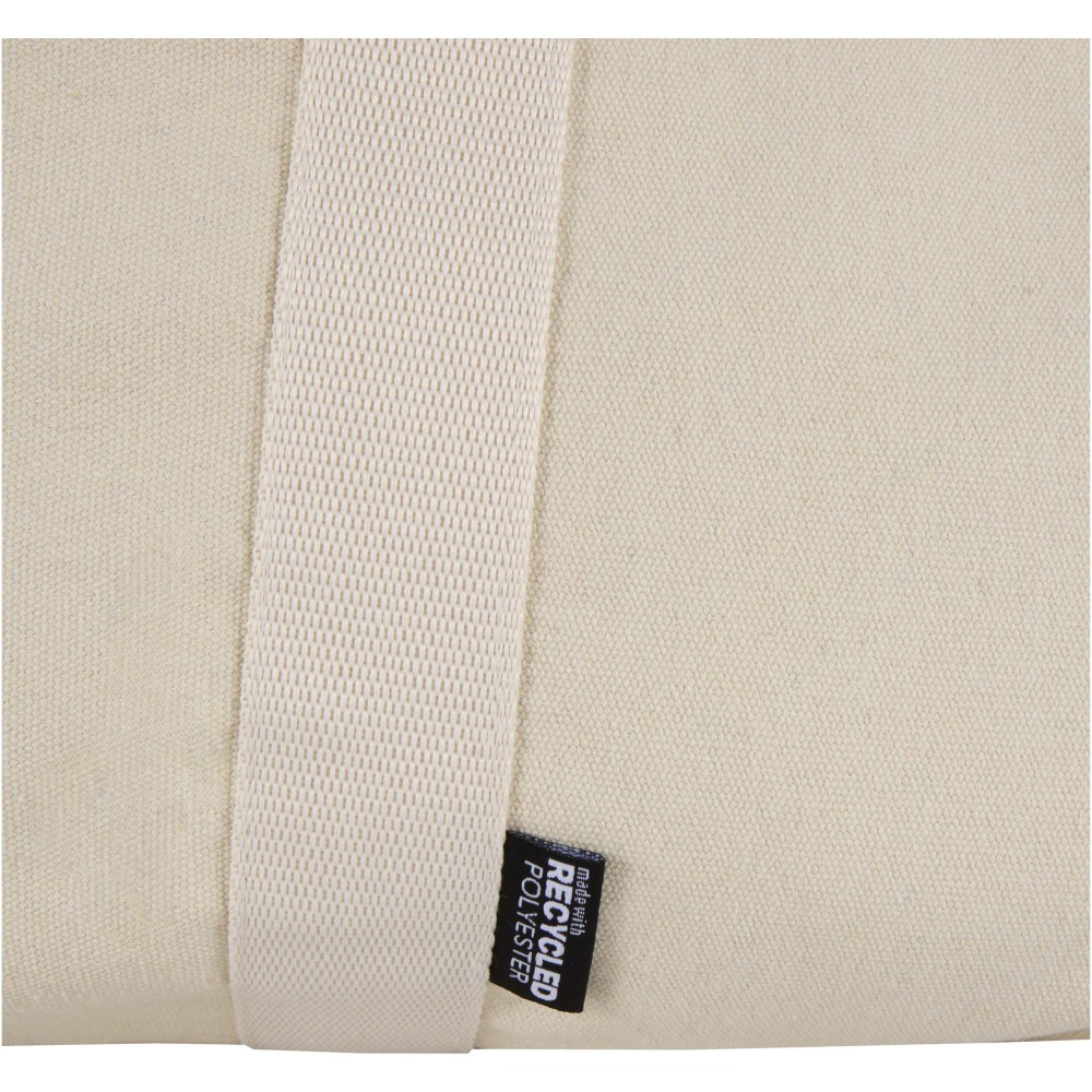 Made from GRS certified recycled water-repellent canvas, the Recanvas duffel bag combines durability with everyday versatility. It features a spacious main compartment, a zipped front pocket for quick-access items, soft carry handles, and detachable adjustable shoulder straps for flexible carrying options. Perfect for gym sessions, weekend trips, or daily use. Volume capacity: 40 litres.