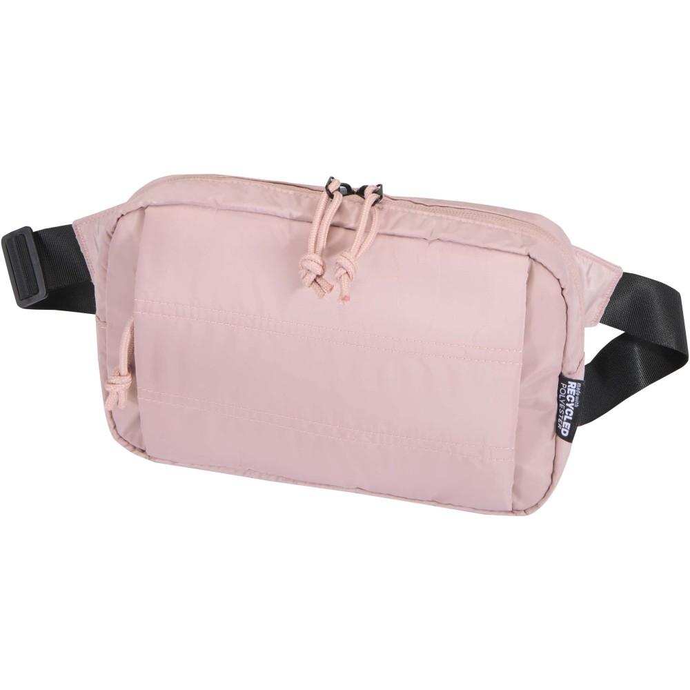 The Puffer waist bag is made from premium GRS certified recycled materials and designed for versatile everyday use. It features a main zipped compartment with an inner sleeve for essentials such as a phone, wallet, and keys, along with a padded front zip pocket for added security. The adjustable strap with a click buckle allows it to be worn around the waist, as a sling, or across the chest. With its signature puffer-style padding, the bag offers both a sleek look and extra protection. Lightweight and water-repellent, it is ideal for travel, concerts, shopping, or casual outings. Volume capacity: 1.5 litres.