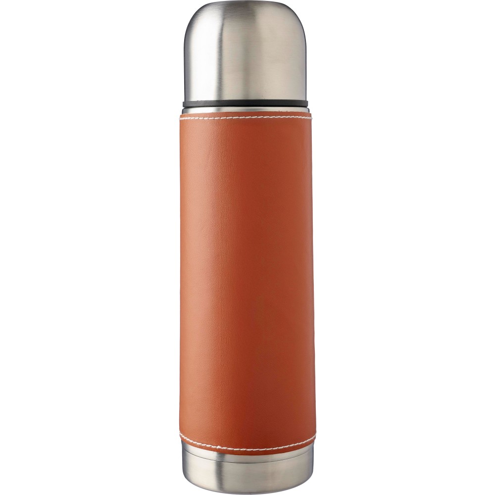 Stainless steel flask (400 ml) with PU outside sleeve. Sleeve can be removed. Made from stainless steel 304. Individually packaged in a brown cardboard box.