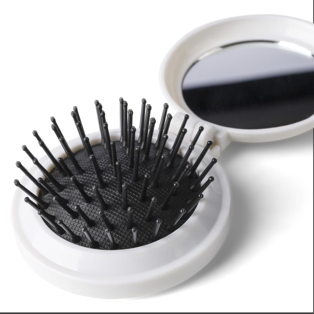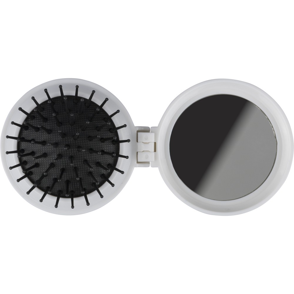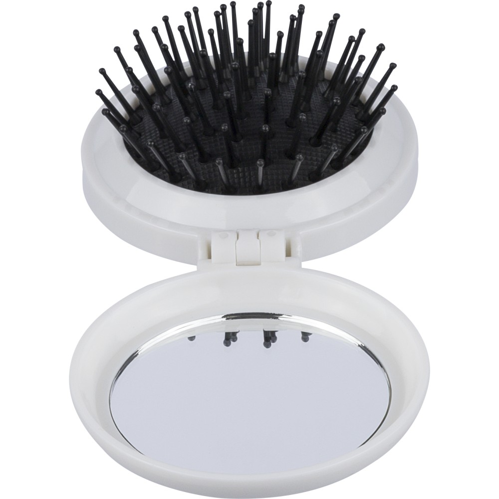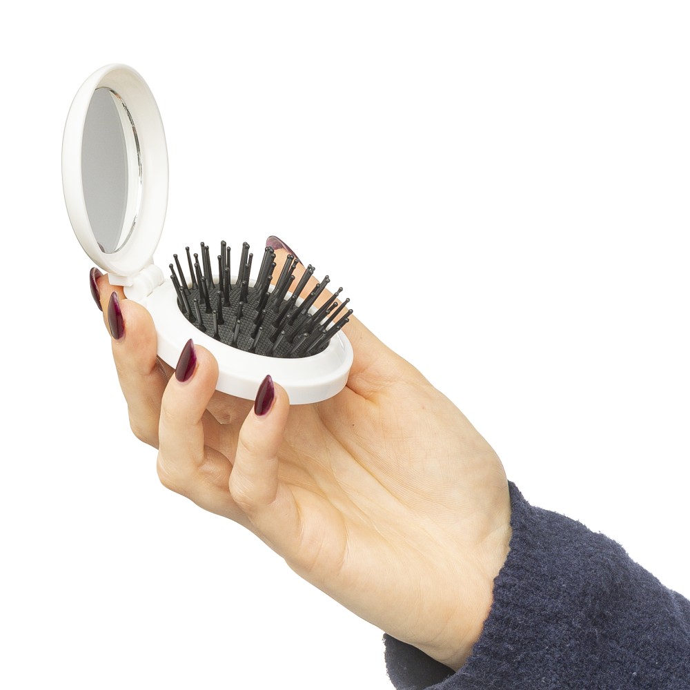 Recycled ABS cassette with integrated brush and mirror. Practical design for on-the-go use and finished with a recycled logo.