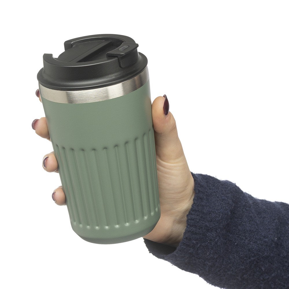 Recycled stainless steel travel mug (400 ml) Chiara, green