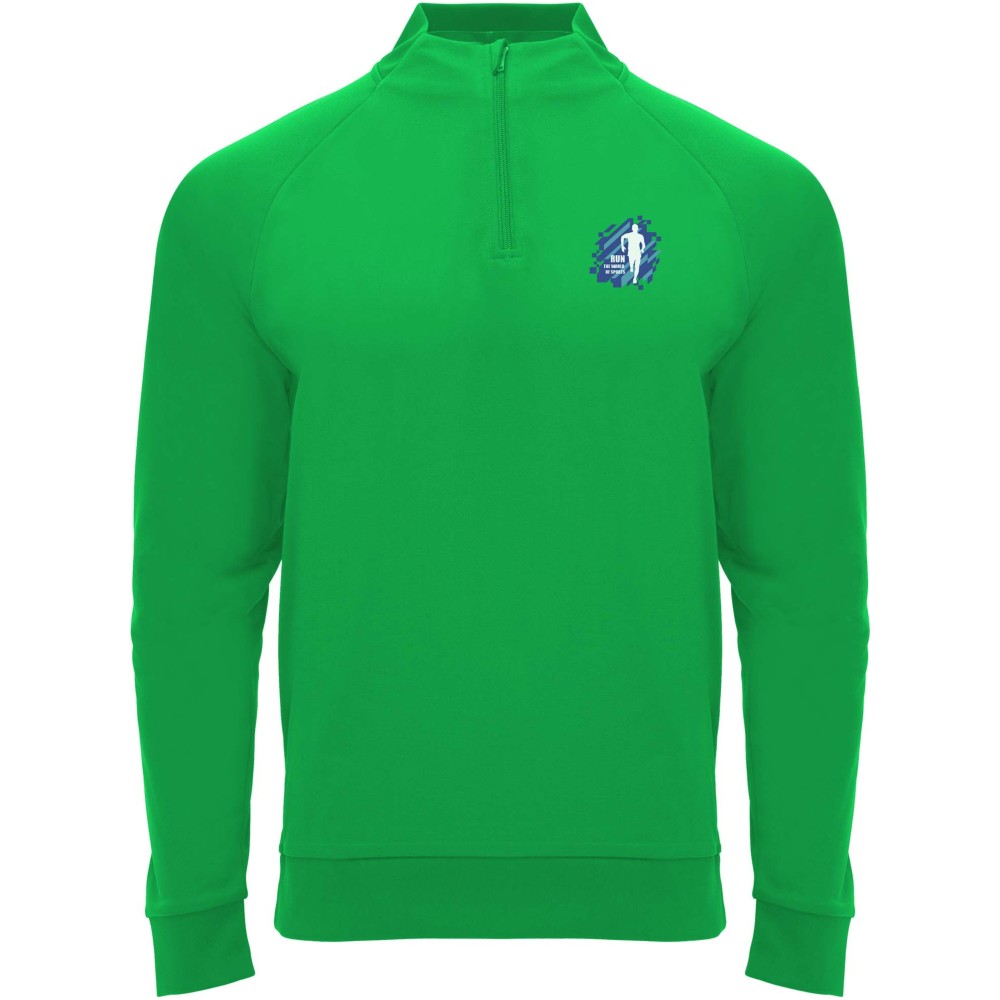 Technical fabric. Raglan sleeves. Inner fleece. Collar with half zipper and matching reinforced covered seams. 1x1 rib in back collar, cuffs and hem. Removable label. Sweatshirt to match with Neapolis trousers.