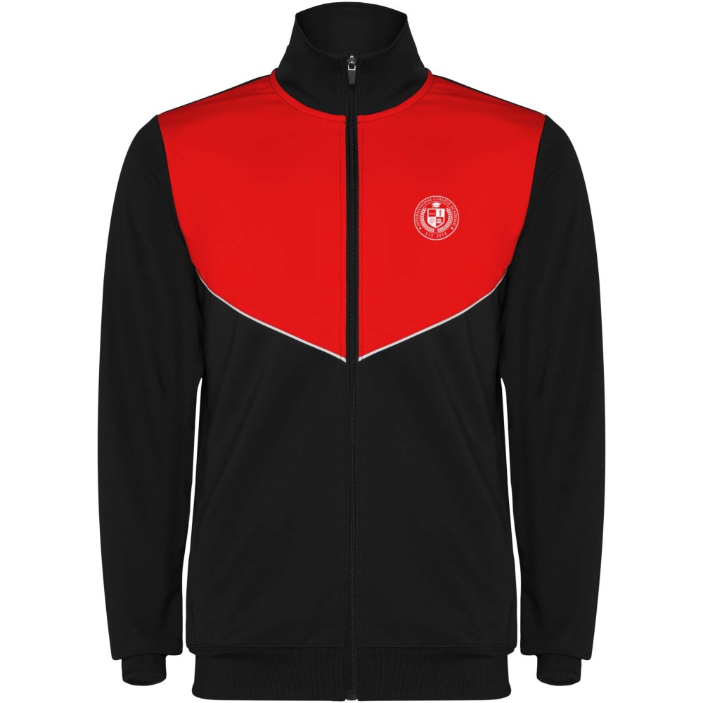 Tracksuit in lightweight and elastic fabric. Jacket with contrasting colour and sewing trims on chest. High collar with contrasting seams. Central front zip. Side pockets. 2x2 ribbed cuffs and waist. Trousers with elastic waistband and drawstring. Contrasting side piece with sewing trim. Zipped hem.