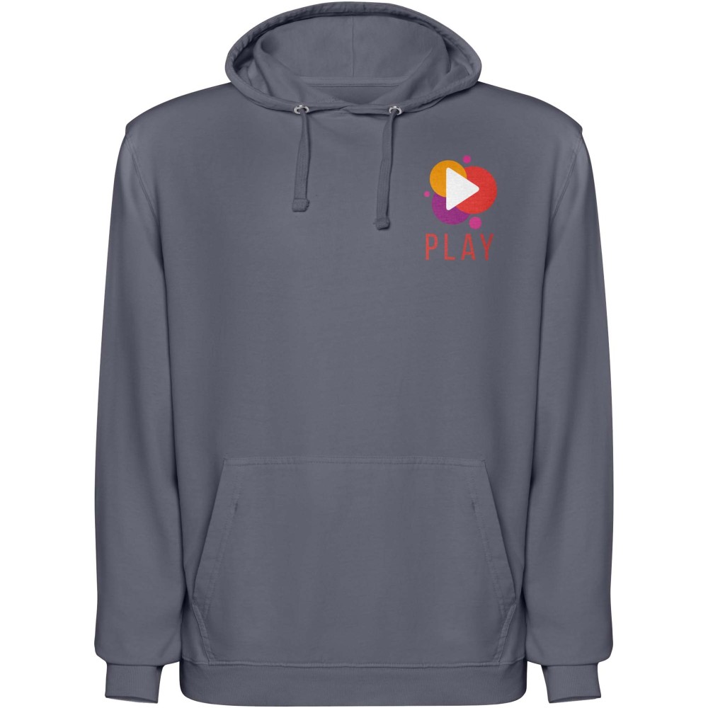 Unisex hoodie with an acid-wash finish. 2x1 ribbed cuffs and hem. Hood lined with single jersey tone-on-tone, with matching flat laces. Tone-on-tone cover stitch at the neck. Kangaroo pocket.