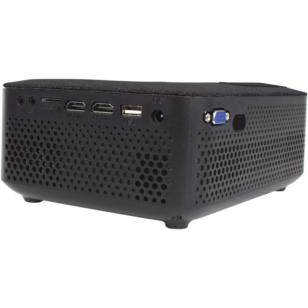 The projector plays back movies with maximum image quality. Supporting 1080P FULL HD, 1080i, 720p, 5761, 480p and 480i via HDMI. Vertical image correction system of +/- 15 degrees. Remote control and 2 speakers included. It's projects videos, audio, photos and text. real resolution of 1280 x 720. lamp with output of up to 5,000 lumens. White LED with 100 ANSI lumens. Contrast 500:1. projection distance up to 5 meters. Direct connection of all types of players via HDMI. Input: VGA, 2xHDMI, USB2.0, MicroSD, Aux in and AV IN.